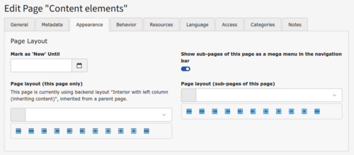 - Number of navigation levels to show: for the header navigation bar, how many (up to two) levels of sub-pages have to be shown