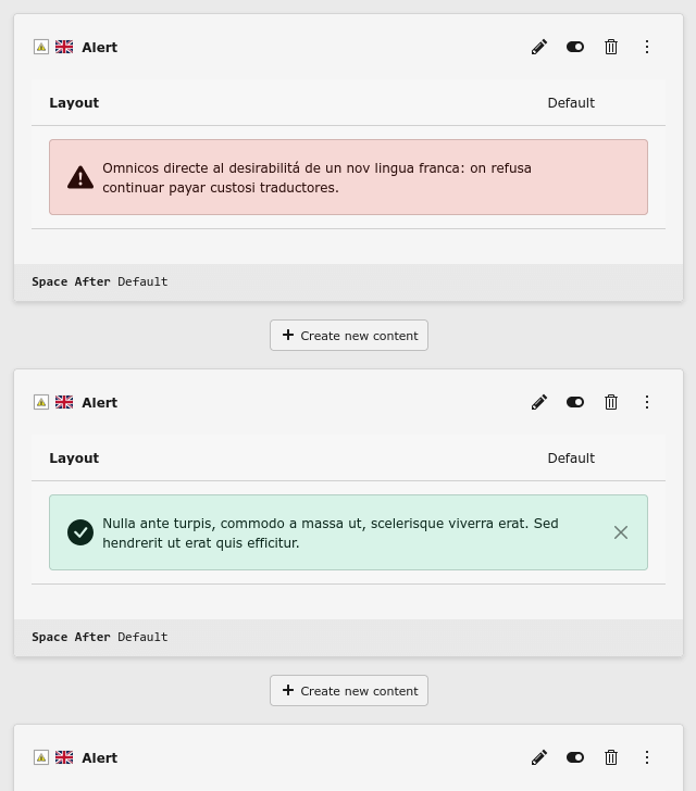 content element allows to show contextual feedback messages for typical user actions.