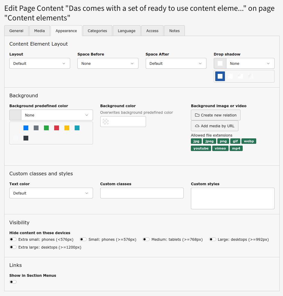 Content elements have been enhanced with some extra fields.
