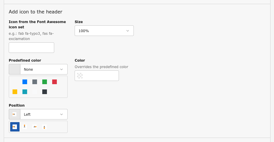 The Headlines palette has now some extra fields to add a Font Awesome icon to the header, allowing to choose its size, position and color.
