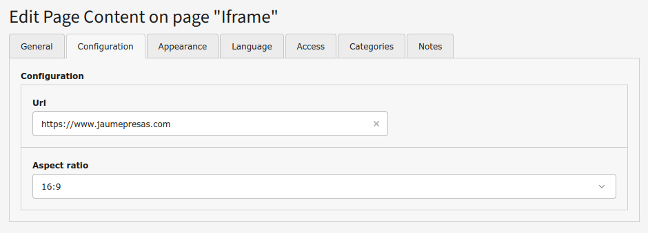 content element allows to insert a responsive iframe, with different aspect ratios.